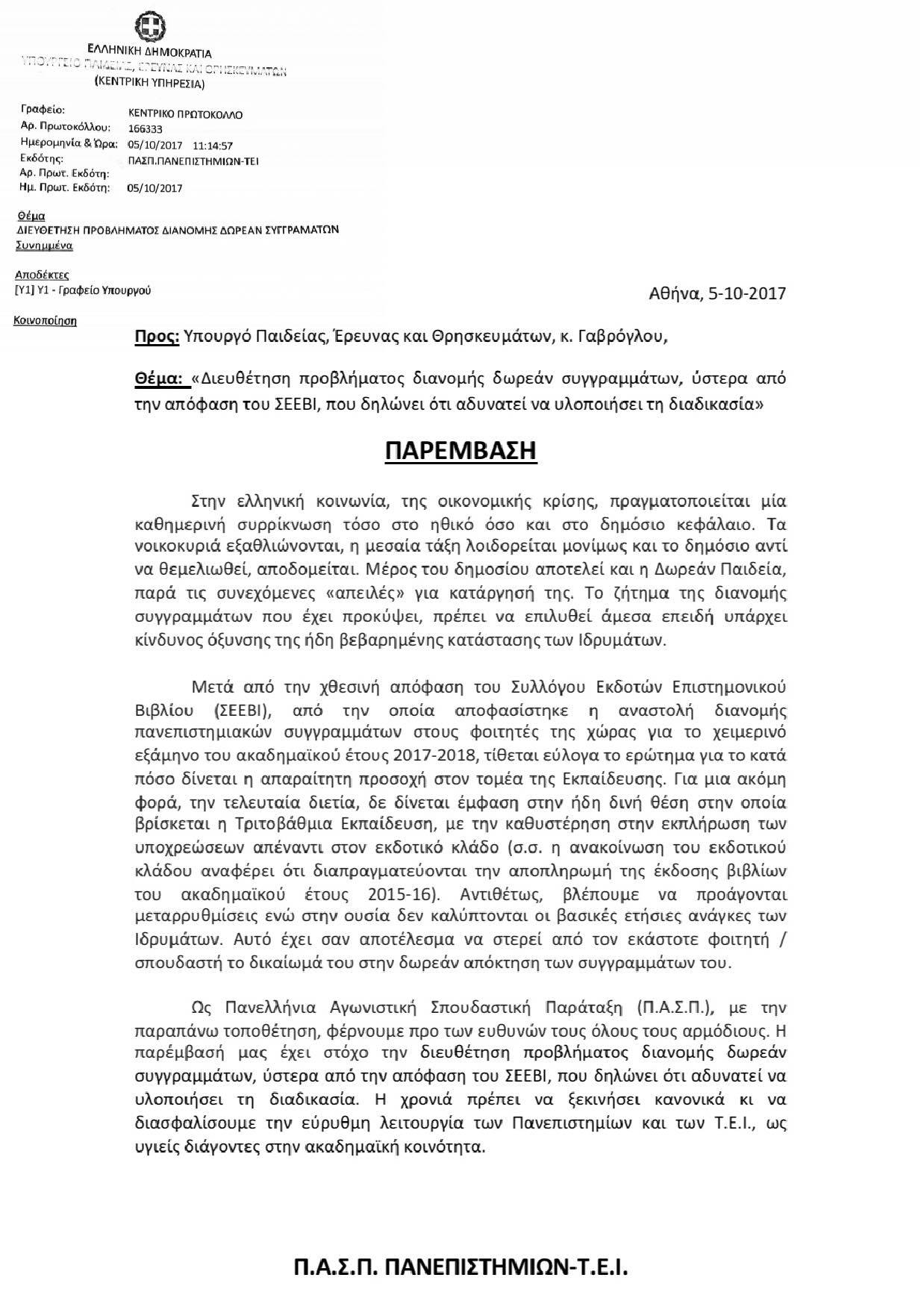 ΔΙΕΥΘΕΤΗΣΗ ΠΡΟΒΛΗΜΑΤΟΣ ΔΙΑΝΟΜΗΣ ΔΩΡΕΑΝ ΣΥΓΓΡΑΜΜΑΤΩΝ