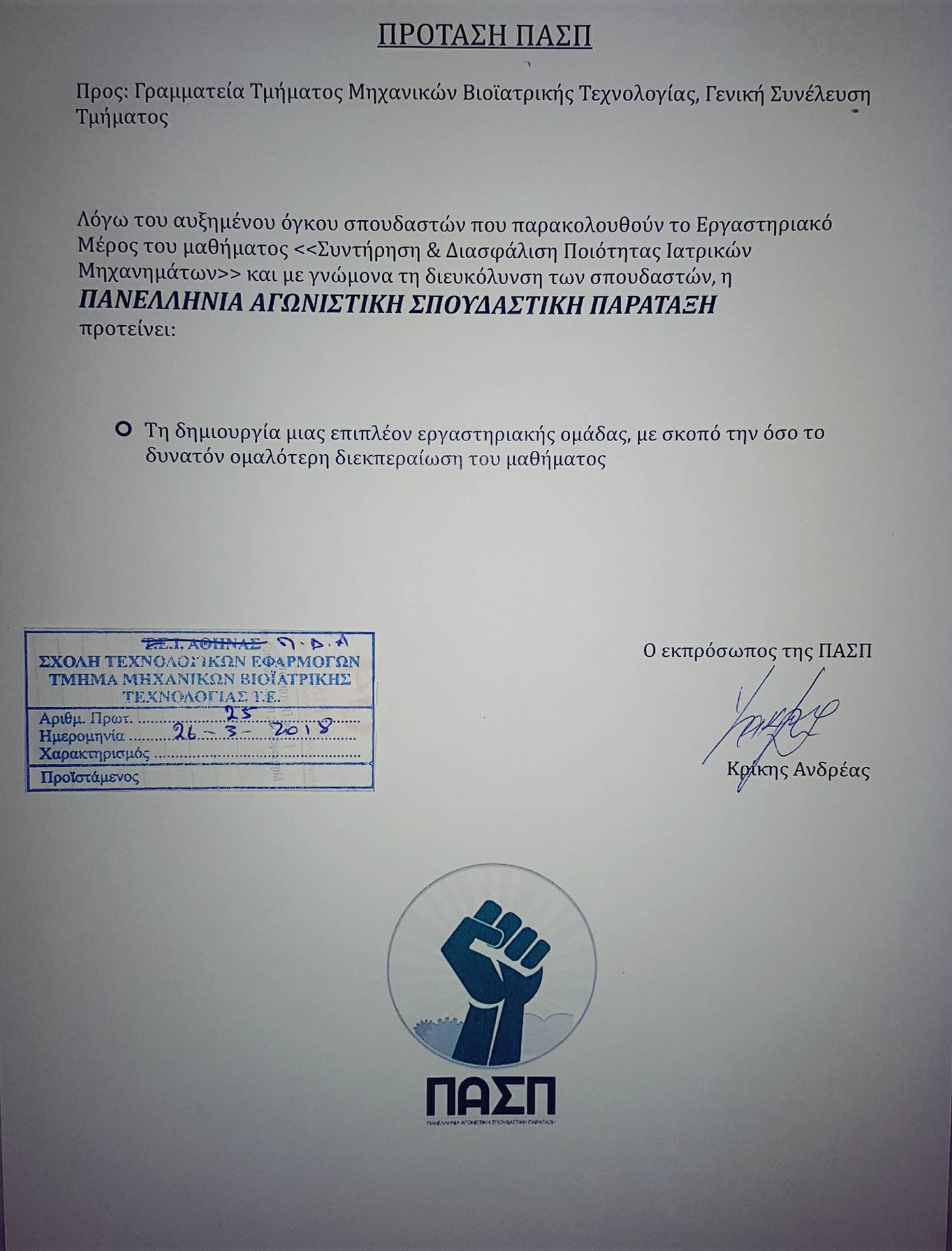 ΠΑΣΠ ΓΙΑ ΔΗΜΙΟΥΡΓΙΑ ΝΕΑΣ ΕΡΓΑΣΤΗΡΙΑΚΗΣ ΟΜΑΔΑΣ