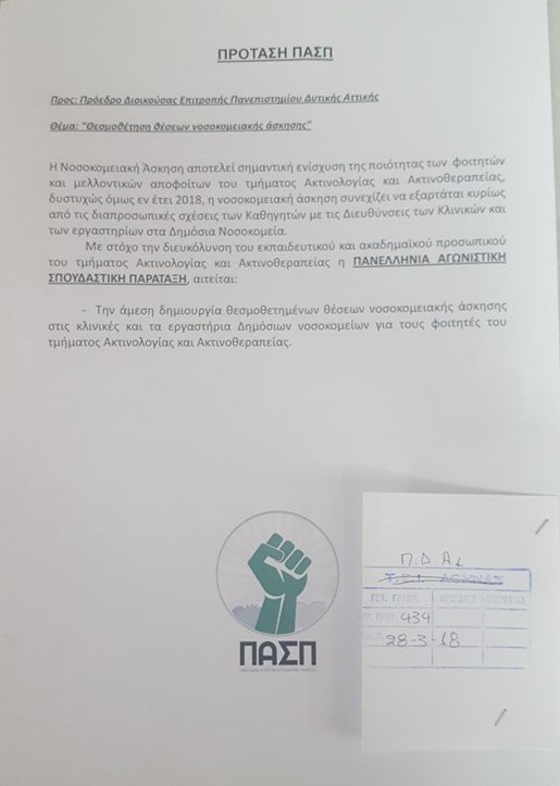 Πρόταση ΠΑΣΠ για Θεσμοθέτηση Θέσεων Νοσοκομειακής Άσκησης
